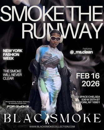 Black Smoke is a fashion house founded by Audrey Jackson in honor of her son, Pop Smoke. Through an annual designer selection process, the brand curates unique collections that blend style, empowerment, and tribute. Pop Smoke’s legacy includes 2 Grammy nominations, 3 AMA nominations, and 5 Billboard Music Award wins. His voice lives on through the bold, evolving expression of Black Smoke.